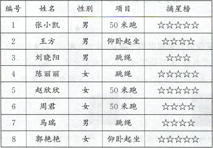 (1)在跳绳项目中,谁得的星最多? 陈丽丽