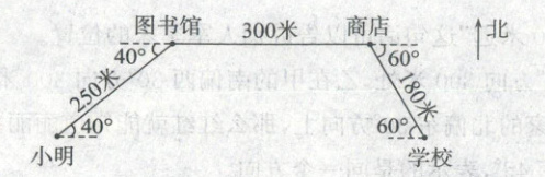 东 北 40° 250 正东 300 商店 东 南 60° 180 西 北 60° 180 商店 正西 300 图书馆 西 南 40° 250
