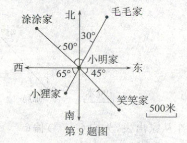 2. 小刚家在小华家的南偏东55°方向上,那么小刚往小华家走,应该向(