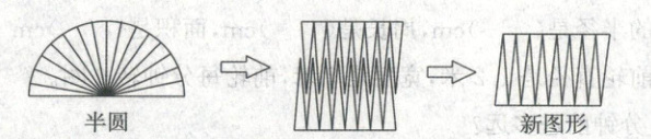 6. 如图,把一个半圆平均分成16份,拼成一个新的图形,这个新图形的周长与半圆周长相比,(