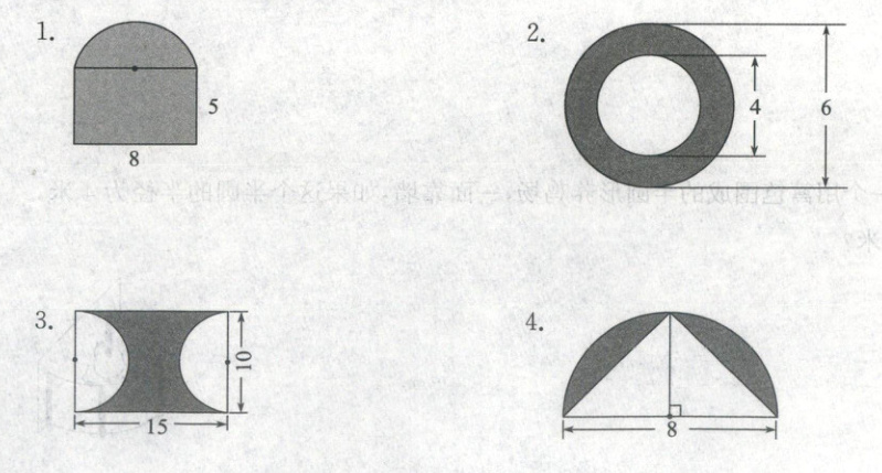 四 求出下面阴影图形的面积(单位:cm)。(每题3分,共12分)