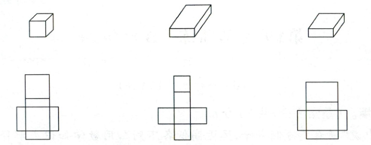 5. 下图中的三个盒子剪开铺平后,剪开图是哪一个?连一连。(6分)