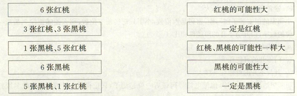 )6. 盒子里装有99个红球、1个白球,摸一次,一定不可能摸到白球。(