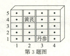 3. 如图,在中药柜中,黄芪的位置是(2,4),那么丹参的位置是(