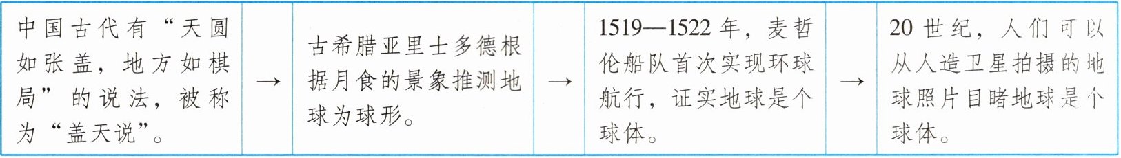 |中国古代有“天圆如张盖,地方如棋局”的说法,被称为“盖天说”。|古希腊亚里士多德根据月食的景象推测地球为球形。|1519—1522年,麦哲伦船队首次实现环球航行,证实地球是个球体。|20世纪,人们可以从人造卫星拍摄的地球照片目睹地球是个球体。|
