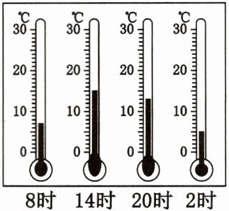 下图示意某气象站人员测得某日8时、14时、20时、2时的气温值。据此完成4、5题。