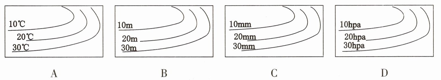 3. 下图示意几种等值线图,反映区域降水量空间分布的是( )