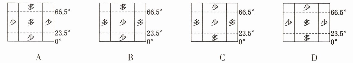 9. 下面四幅大陆图中,可以正确反映世界年降水量分布状况的是( )
