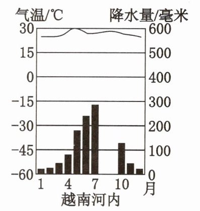 (1)根据越南河内各月的平均降水量数据,补充完成柱状图。