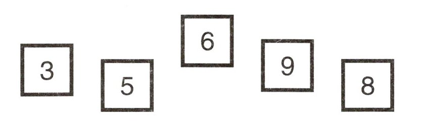 四、从下面的卡片中选出3个数填空,使得4个算式成立。