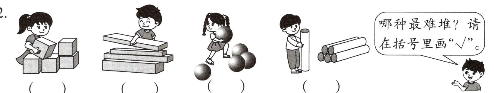 哪种最难堆?请在括号里画“√”。