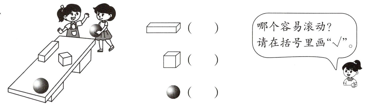 哪个容易滚动?请在括号里画“√”。