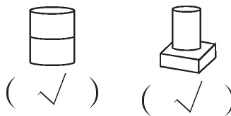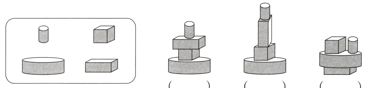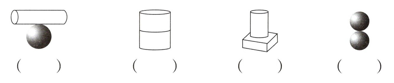 三、用下面4个图形搭一搭,在又稳又高的组合下面画“√”。
