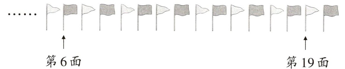 )面小旗。2. 把右边的5面小旗圈起来;在从左边起,第11面小旗的下面画“△”。