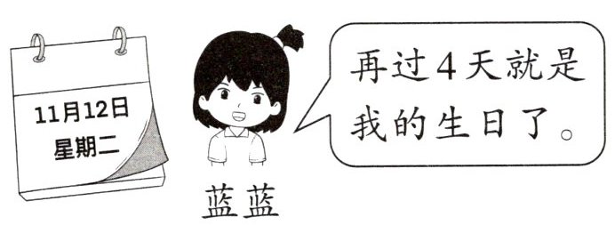三、蓝蓝的生日是星期几呢?接着画一画。