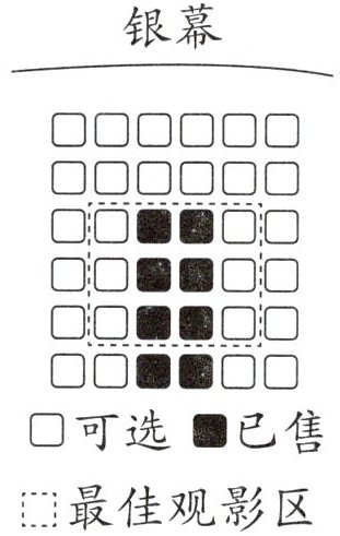 三、小华的妈妈用手机购买电影票,下面是某场电影三号厅的售票情况。