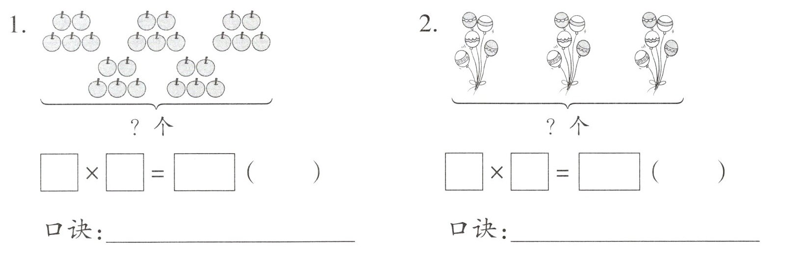 二、看图写出乘法算式和口诀。