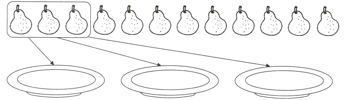 把12个梨平均分成3份,分了(