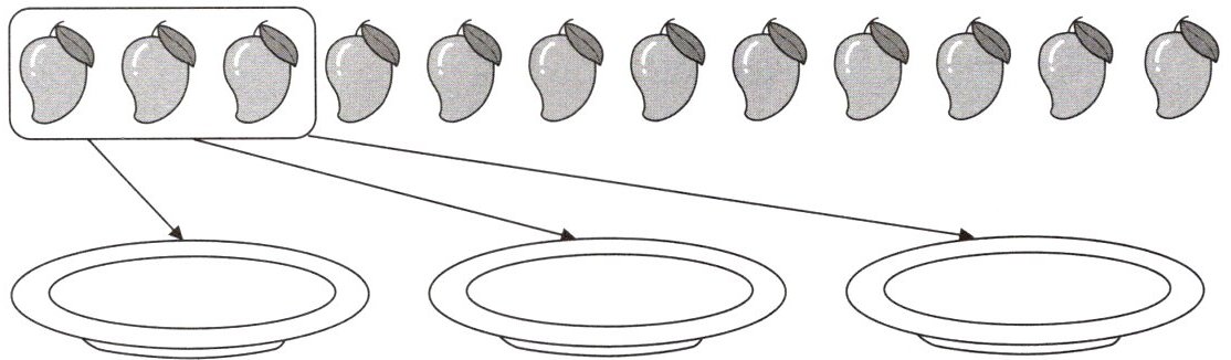 把12个芒果平均放在3个盘子里,每盘放几个?