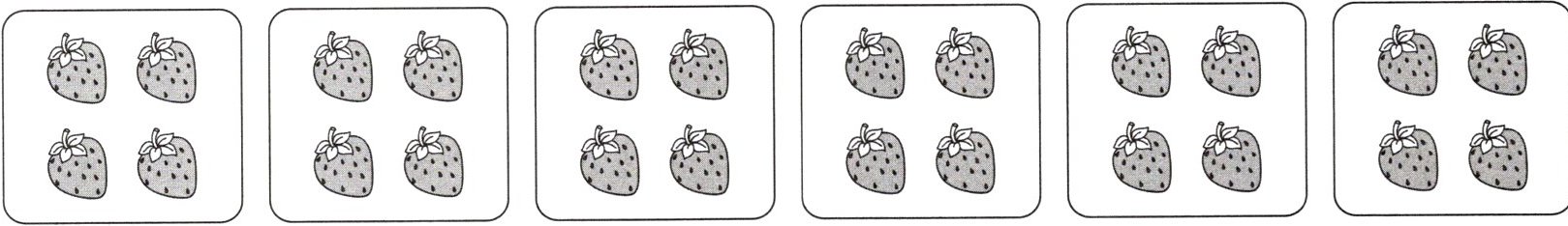 每4颗草莓分一份,6份一共有24颗。24颗草莓,平均分成6份,每份是4颗。24颗草莓,每4颗草莓分一份,可以分6份。