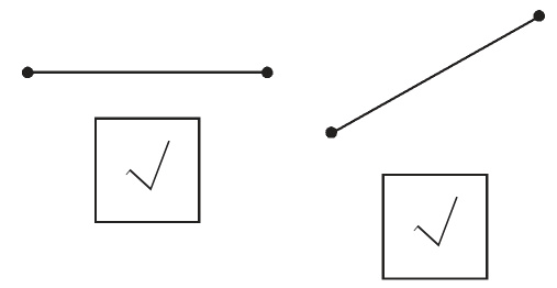 二、下面哪些是线段?在$□$里画“√”,并和同桌说说你的理由。