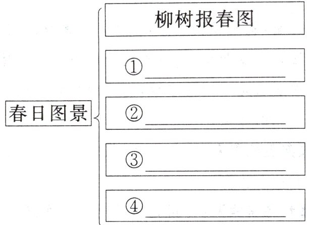 10. (☆课后习题一变式)在作者笔下,春天就像一幅幅美丽的图画。阅读文章,说说作者描绘了哪些春天的图景,完成思维导图。(4分)