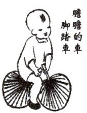 漫画画的是一个孩子骑在用两把蒲扇做成的"脚踏车"上,寓意儿童充满想象和创造力,我们应保留一份童真童趣。