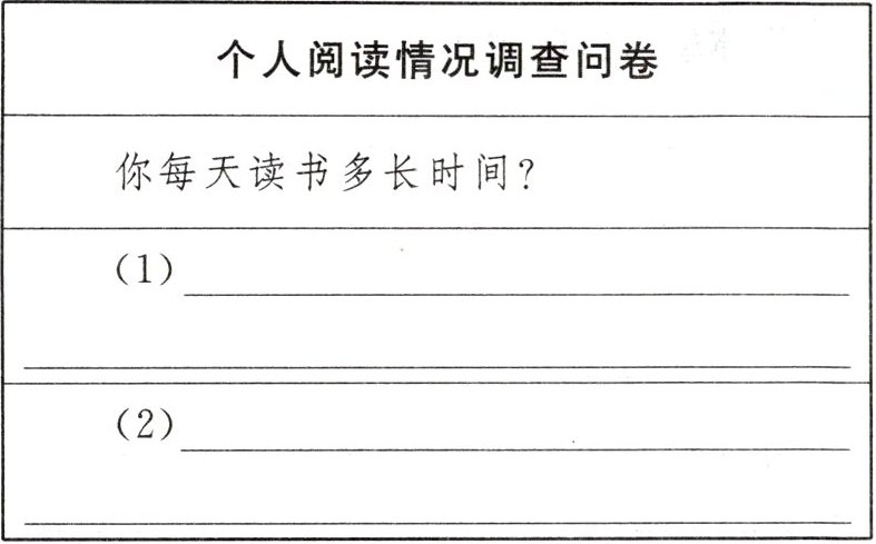8. 为了更好地了解中学生的读书现状,同学们准备进行一次调查,下面是大家设计的调查问卷,请你再设计两个合理的调查问题。