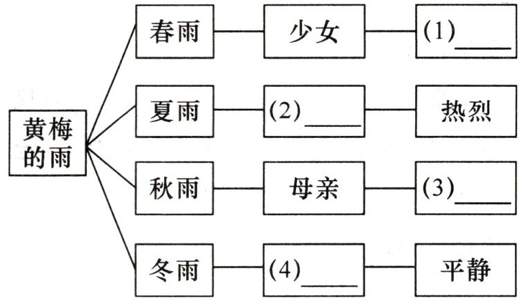 6. 文中四季之雨,“容貌”有别,“性情”各异。请你认真阅读,将下图补充完整。(4 分)