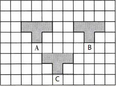 2. 把图形 B 向下平移 3 格,再向左平移 3 格,得到图形 C。