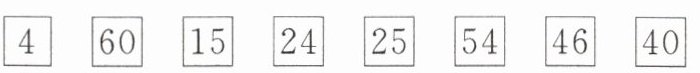 1. 2的倍数:4、24、46、60、40;5的倍数:15、25、60、40;既是2又是5的倍数:60、40。