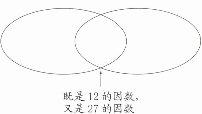 12的因数圈填1、2、3、4、6、12;27的因数圈填1、3、9、27;重叠部分填1、3。