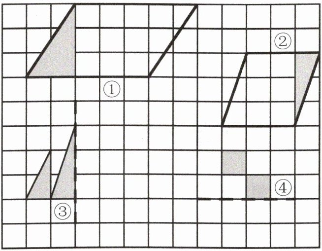 1. 图①中的三角形向右平移5格,原来的平行四边形变成了( )形。