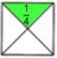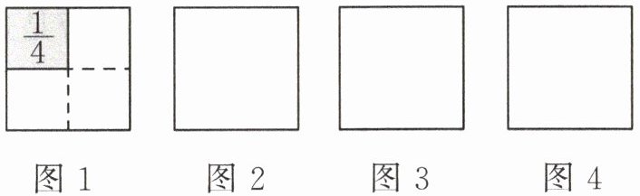 有一块正方形菜地,它的$\frac{1}{4}$种白菜,如图 1 所示,请你在图 2、图 3、图 4 中设计出其他方案表示这块菜地的$\frac{1}{4}$。