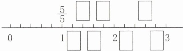 五、在直线上面的方框里填上适当的假分数,在下面的方框里填上适当的带分数。