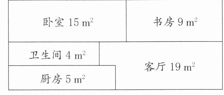 (1) 新房总面积:$15 + 9 + 4 + 5 + 19 = 52\ (m^2)$。
