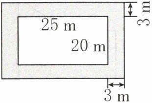 3. 有一个长25m,宽20m的长方形花坛,如果在这个花坛的四周修一条3m宽的小路(如下图),小路的面积是多少平方米?