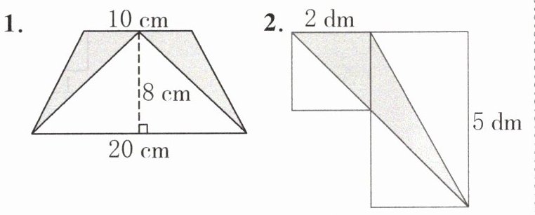 1. 梯形面积:$(10+20)×8÷2=120\,cm^2$