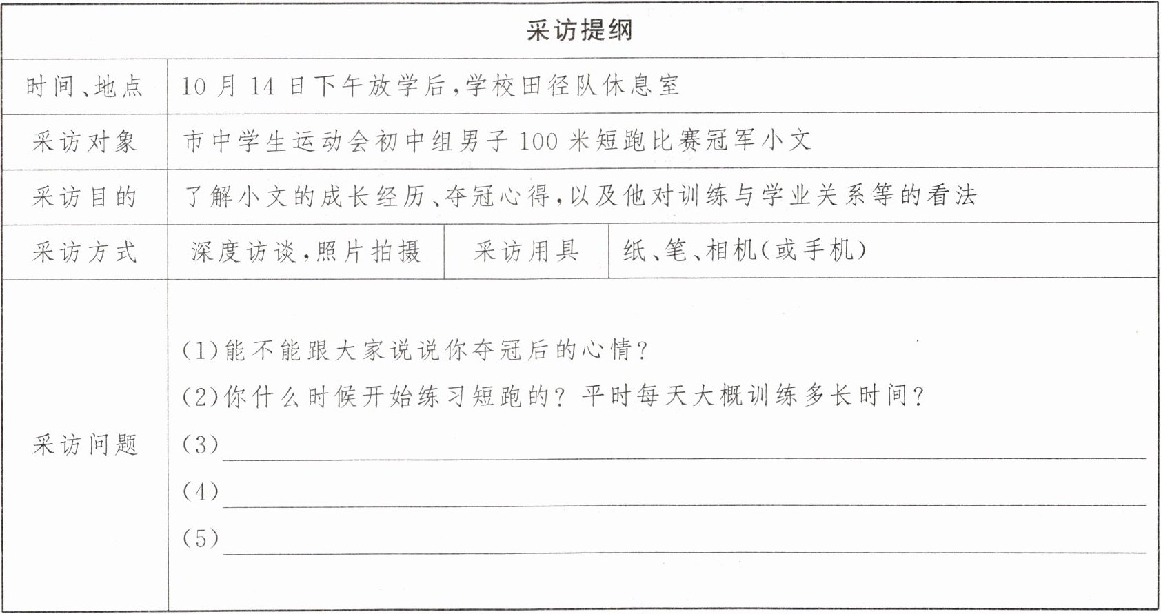 2. 请你根据下面的采访提纲,再补充三个采访问题。