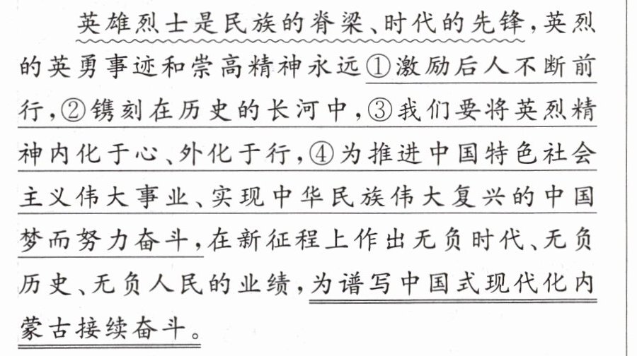 3.英雄烈士是民族的脊梁、时代的先锋 4.为谱写中国式现代化内蒙古新篇章接续奋斗。 5.C