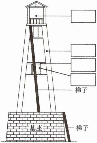 7. 小语读完文章后,根据内容绘制了望火楼简图,请你把各构造名称填到对应方框中。