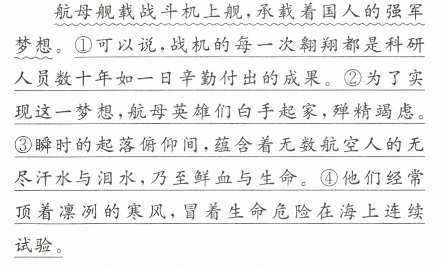 学完本课后,班级开展了“中国梦·航母梦”主题学习活动。请阅读下面语段,完成题目。