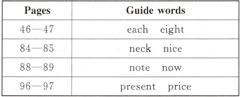 活动1: On which page would you find these words? Write down the possible page numberranges(写出可能的页码范围)for the following words.