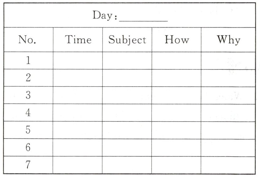Work in groups. Talk about your class timetable for a certain day(某天). How do you like the subjects? And why? Please fill in the form.