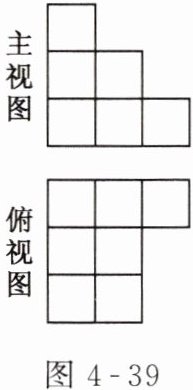 12. 用小立方块搭一个几何体,使得它的主视图和俯视图如图 4 - 39 所示。这样的几何体只有一种吗?若不止一种,则它最少需要多少个小立方块?最多需要多少个小立方块?