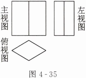 9. 一个几何体的三视图如图 4 - 35 所示。请写出该几何体的名称,并画出该物体的立体图形。