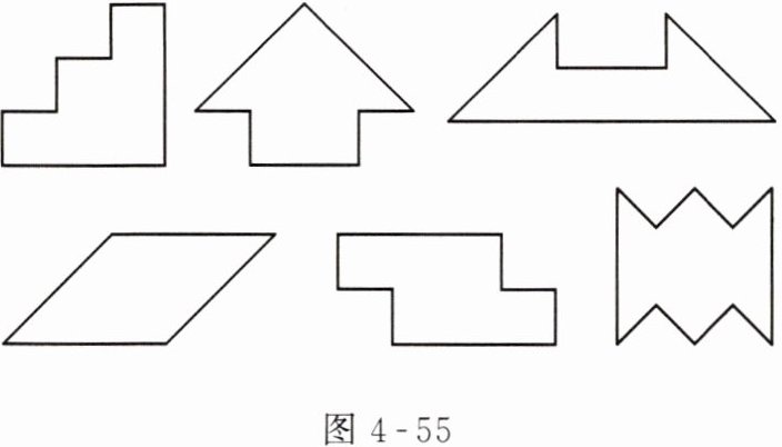 6. 如图 4-55 所示的各个图形都是由两个大小和形状完全相同的基本图形拼接得到的,请在每个图形中添加若干条线段,使两个基本图形完整地显现出来.