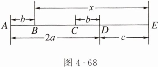 3. 如图 4 - 68,$ x $ 用含 $ a $,$ b $,$ c $ 的代数式表示为______。