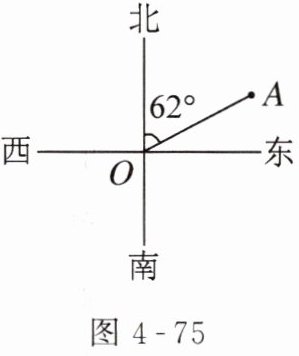 7. 如图4-75所示,从点$O看点A$,视线的方向是 【 】