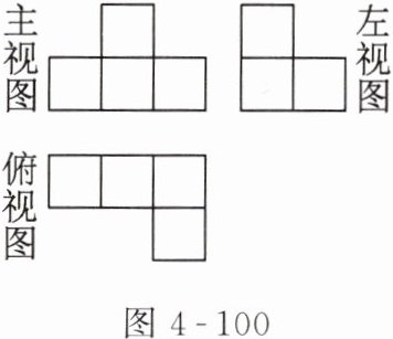 1. (宁夏) 图 4-100 所示是由若干个棱长为 1 的小正方体组成的一个几何体的三视图,则这个几何体的表面积是______。